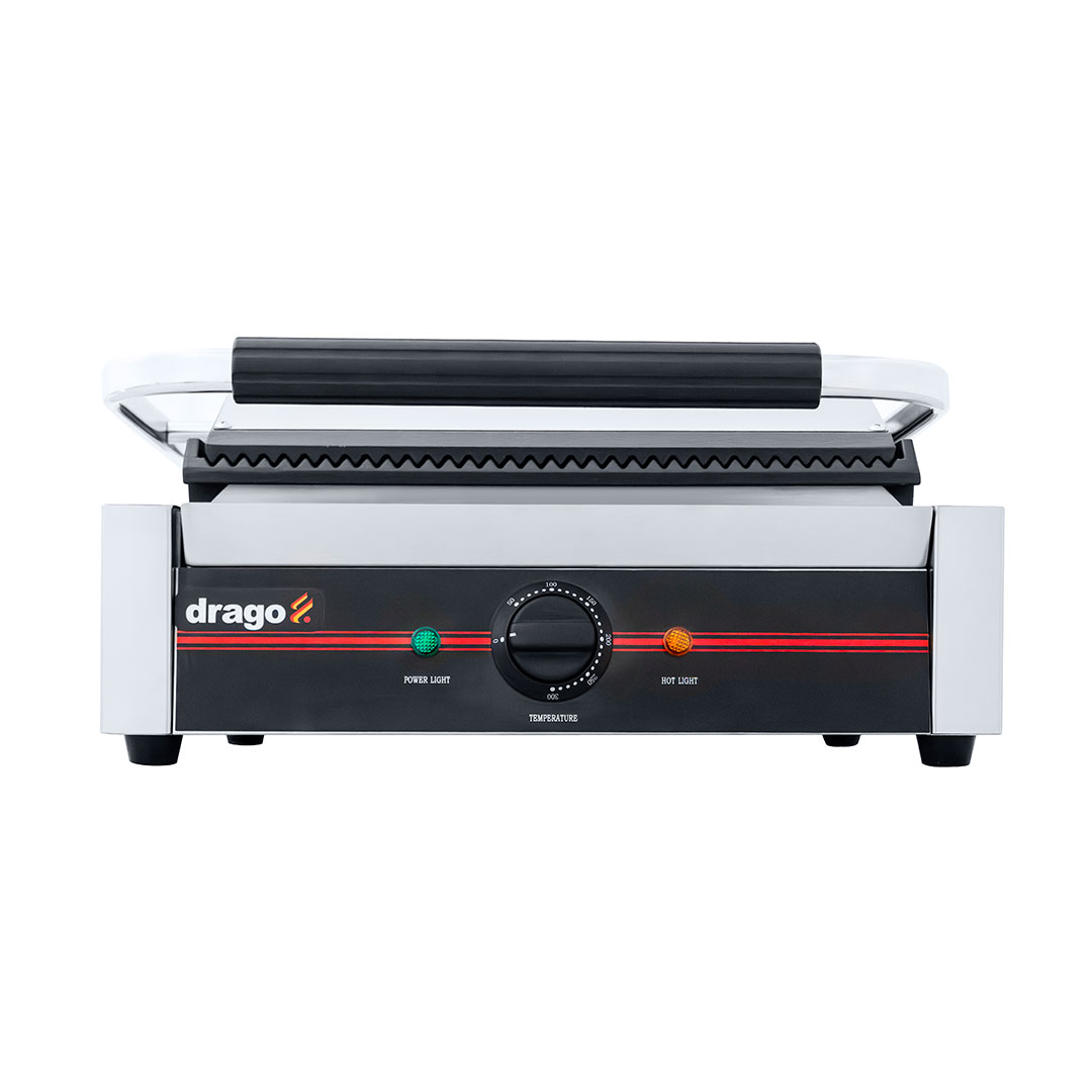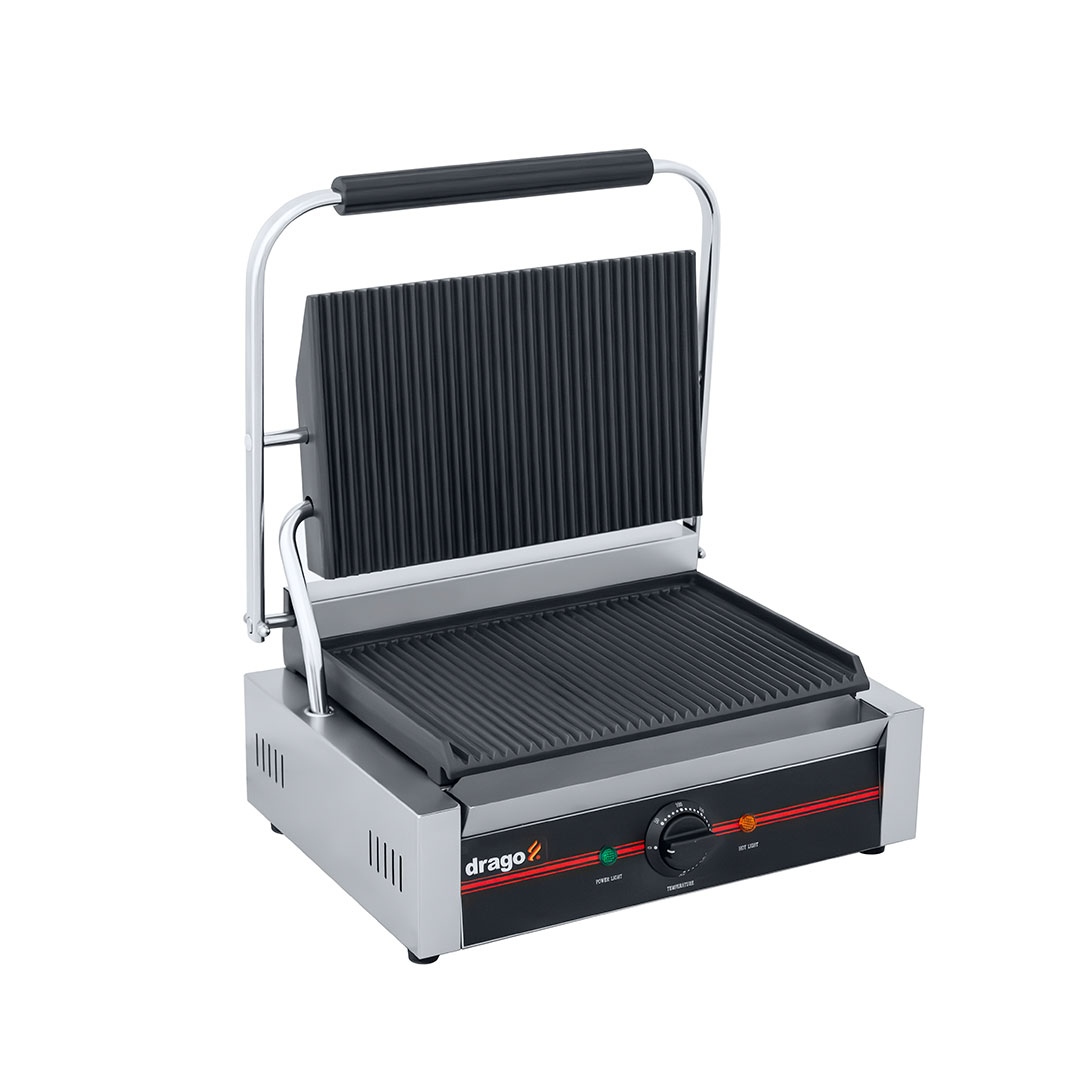 • Plancha ranurada con asador de contacto eléctrico ideal para preparar tortas, burritos, baguettes etc.